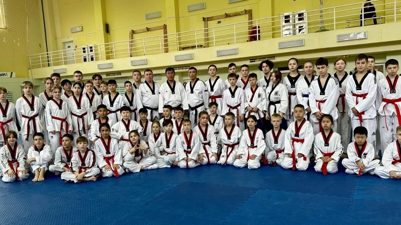 Аттестацию проводил почетный президент Сахалинской ассоциации тхэквондо Мин Те Чур (черный пояс, 8 дан).