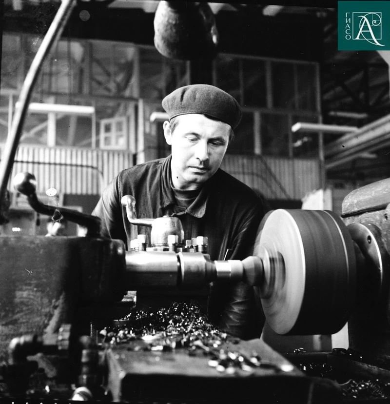 Токарные работы на судоремонтном заводе. Сахалинская область. 1960-е гг.