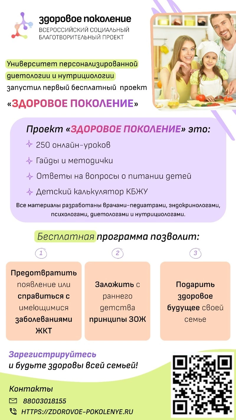 Материалы «Здорового поколения» разработаны врачами педиатрами, эндокринологами, диетологами и нутрициологами. 50 министерств РФ поддержали и одобрили бесплатную программу для Вас!