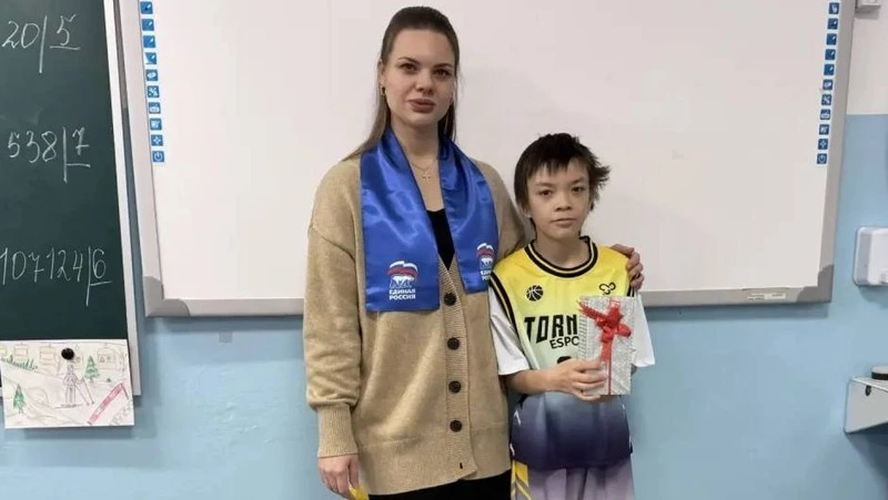 Ученик школы № 2 Денис мечтал о новом телефоне, и его желание исполнил предприниматель, член партии «Единая Россия» Аркадик Амирзатян. Лично вручить подарок он не смог, поэтому с сюрпризом к мальчику пришла исполнительный секретарь Невельского отделения партии Анна Смирнова.