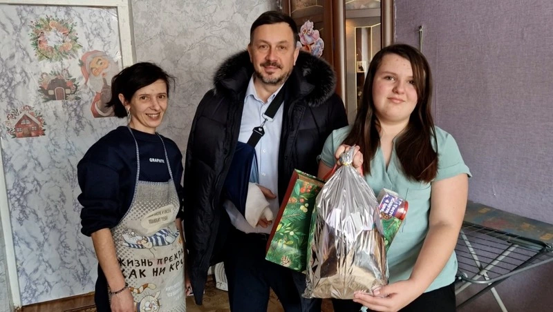 В преддверии праздника вице-мэр Невельского муниципального округа Олег Манухин навестил Ангелину, проживающую в селе Горнозаводск. Ангелина живет в многодетной семье – у неё три младших брата. От доброго волшебника девочка загадала получить подарок-сюрприз. Ангелина любит творчество и игру в мини-волейбол, поэтому в подарок получила набор для рисования и профессиональный мяч.