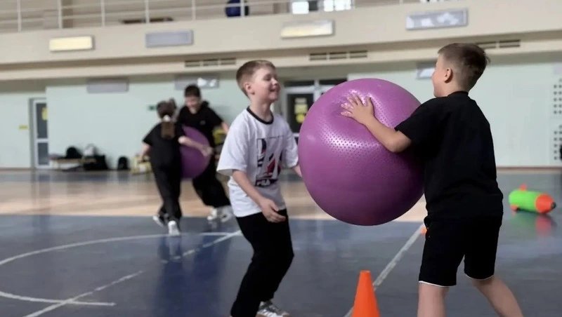В первой части программы директор школы Евгения Любчинова провела для ребят веселые старты с использованием различного спортивного инвентаря. Активную поддержку участникам оказали родители и классный руководитель Анастасия Будаева.